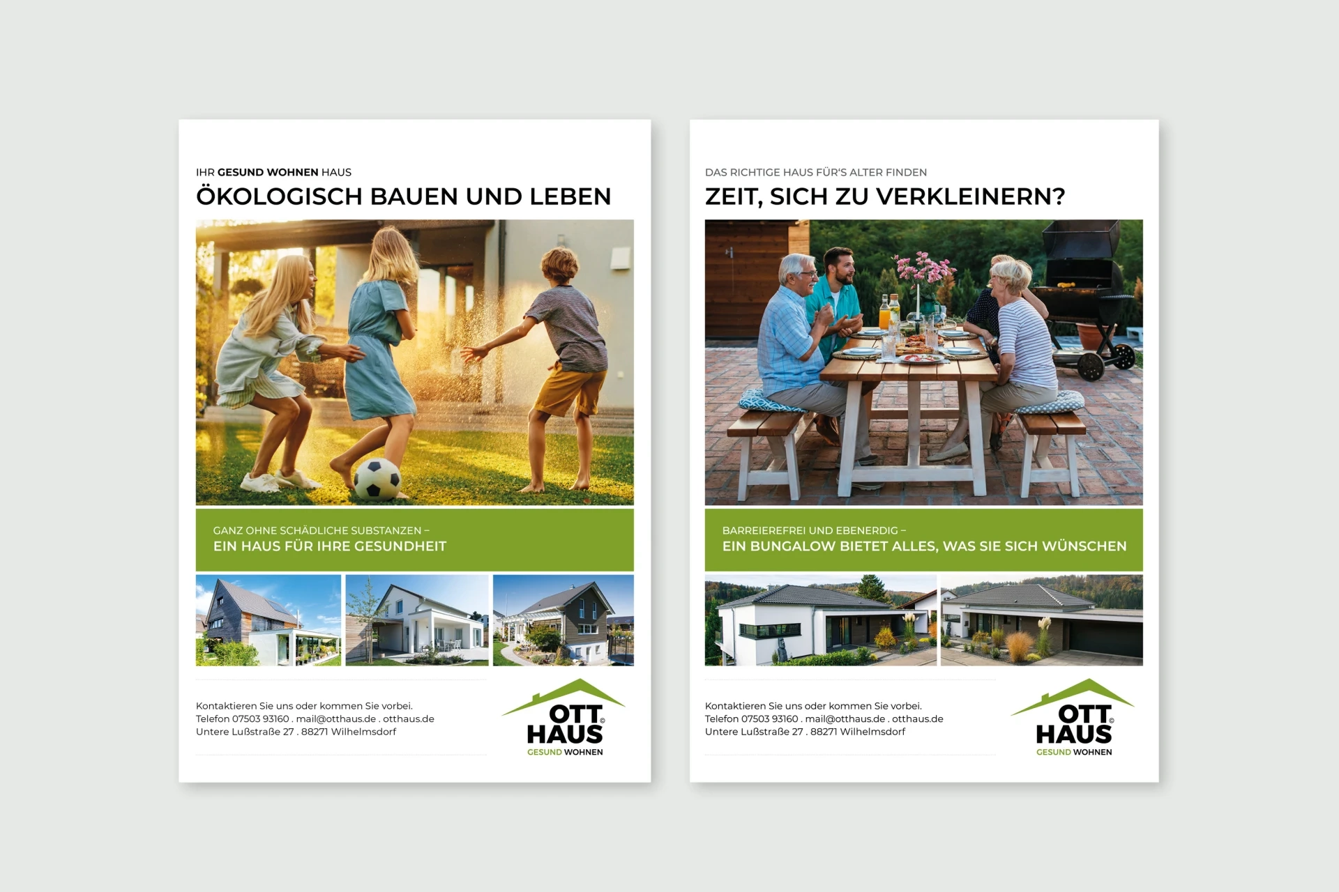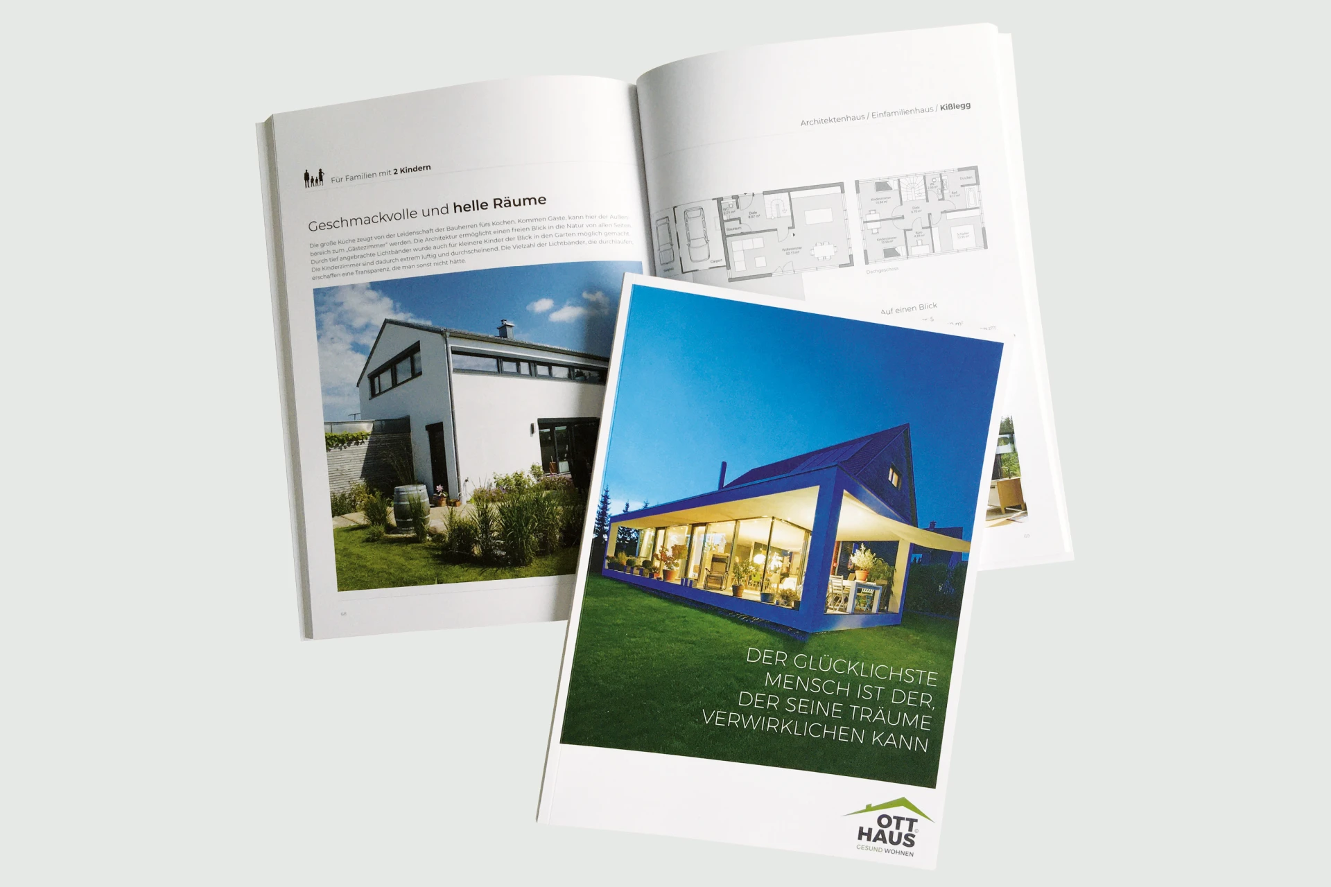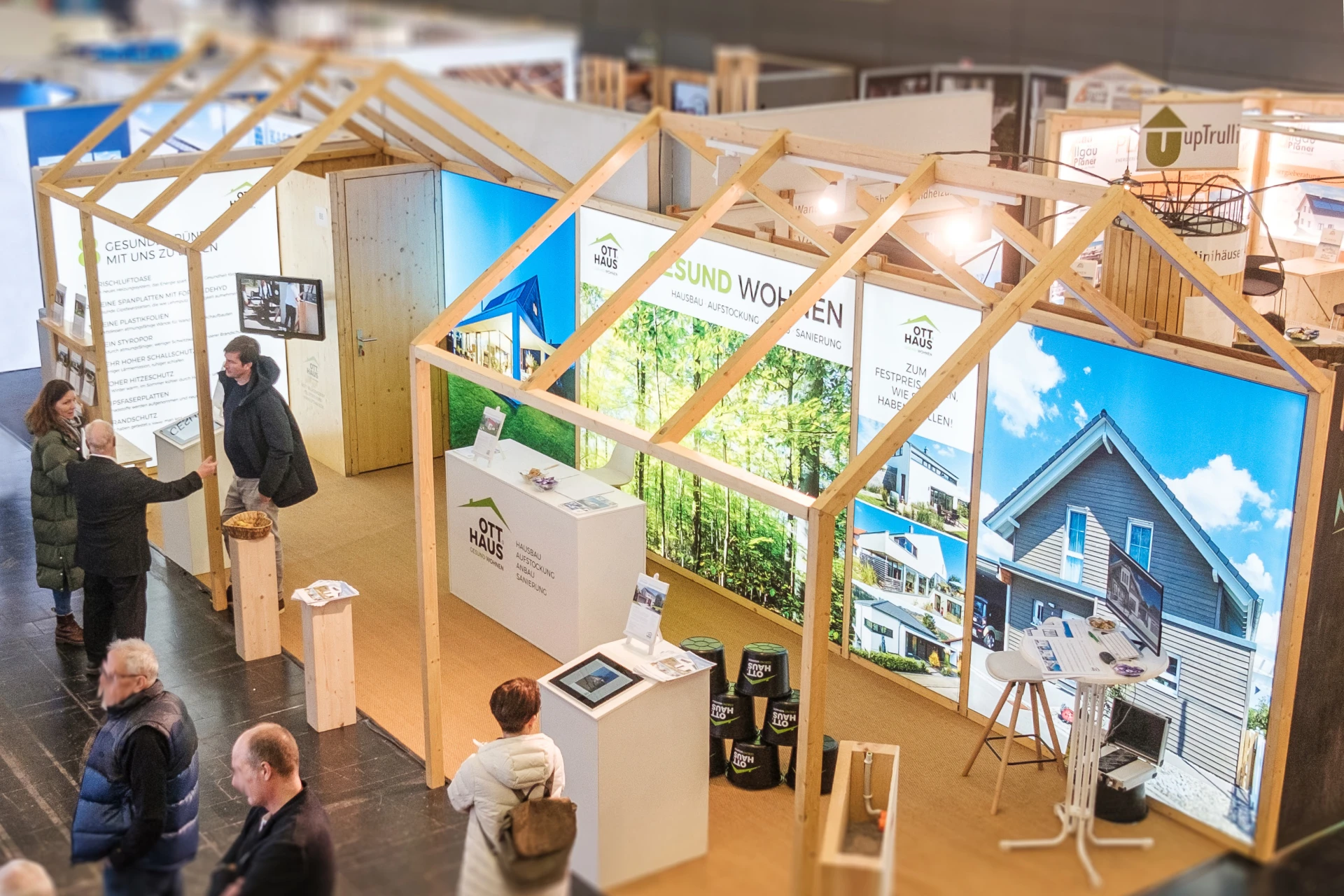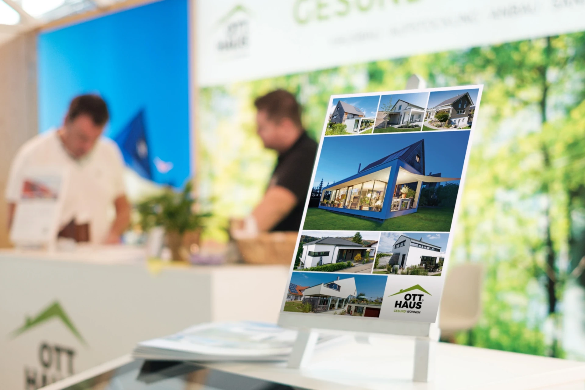 Die Primärfarbwahl war naheliegend: Grün. OTT HAUS hat sich im Laufe der Jahre immer mehr auf gesundes Wohnen spezialisiert, von formaldehydfreien Wänden bis hin zu gesundem Raumklima für Allergiker und Asthmatiker.