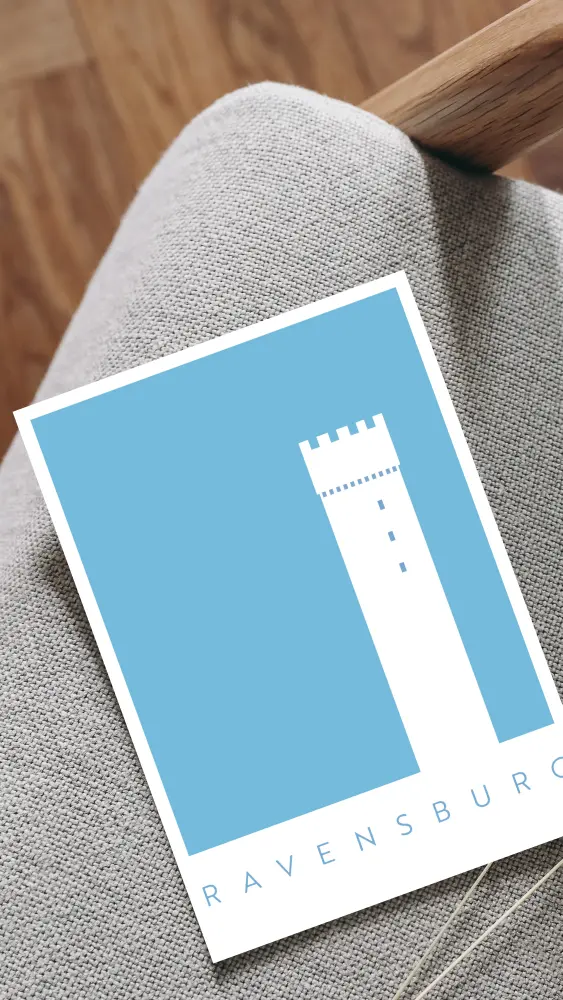 Warum sollte eine schöne Stadt nicht auch schöne Mitbringsel wie Postkarten und Poster haben! Mit Motiven, die liebevoll und ästhetisch in den Ravensburger Farben gestaltet sind.