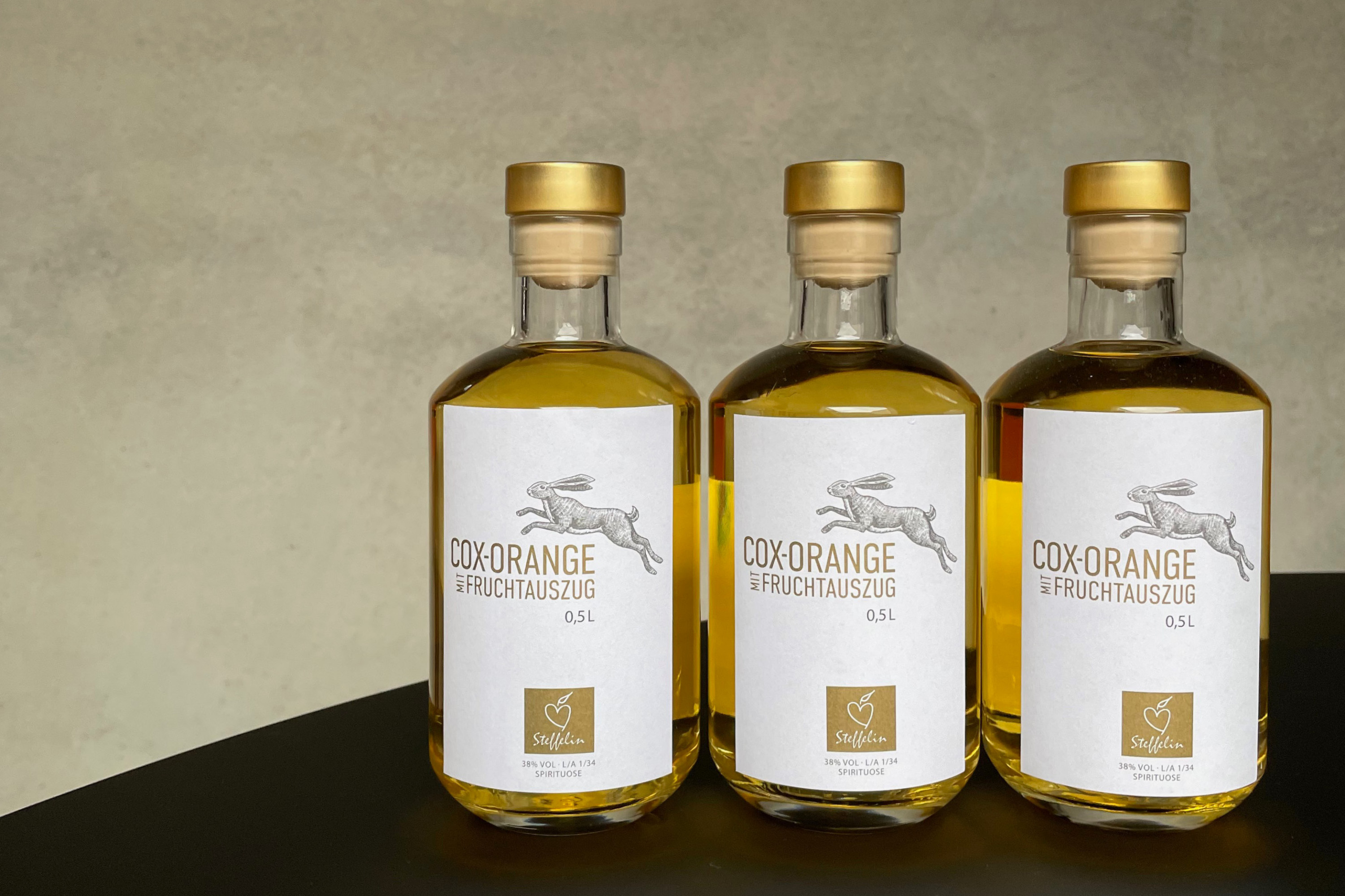 Edle Brände brauchen eine edle Verpackung. Das dachte sich auch Monika Steffelin vom Obst- und Urlaubshof Steffelin aus Ittendorf beim Bodensee und beauftragte mich mit der Entwicklung eines Gesamtkonzepts, das die Spiritualität und Tierliebe der Hofherrin aufgreift. Basis sind deren Kraft-Tier-Karten, die für sie ganz persönliche Berater und besondere Wegbegleiter sind. Jeder Edelbrand- und Likör-Sorte aus der hauseigenen Brennerei ordnete Monika Steffelin ein Kraft-Tier zu, das Werkhallen-Kollege und Illustrator Christoph Bender gezeichnet und Kerstin für die Etiketten grafisch in Szene gesetzt hat. So entstand eine Etiketten-Range mit einem echten USP.